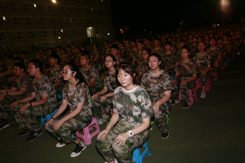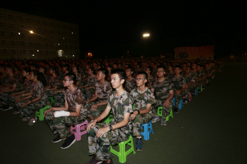 21日晚間學生練習坐姿