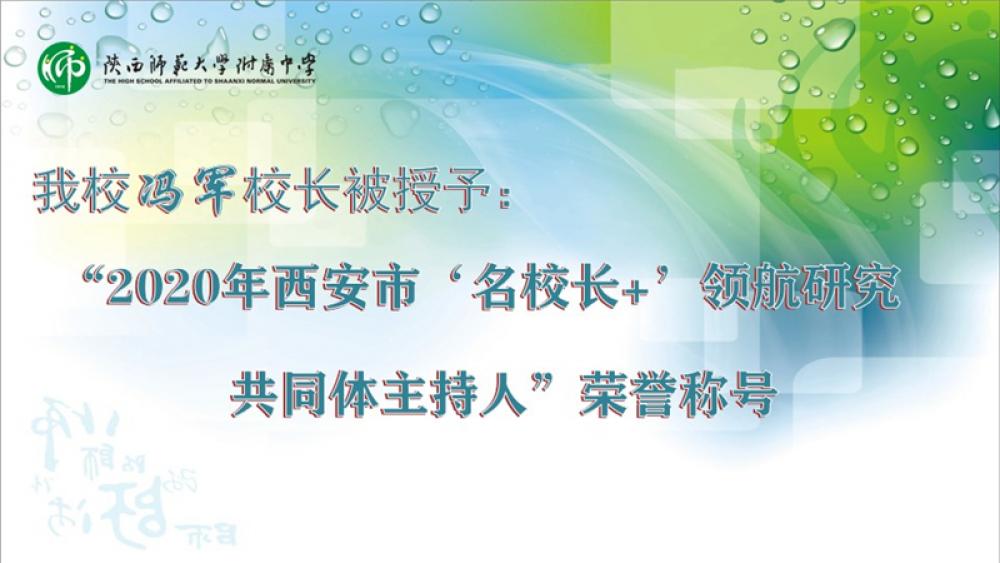 我校校長馮軍被授予“2020年西安市‘名校長+’領航研究共同體主持人”稱號